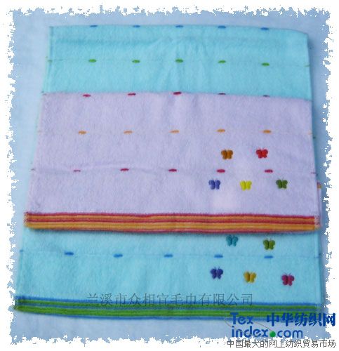 長期供應 緞繡蝴蝶毛巾