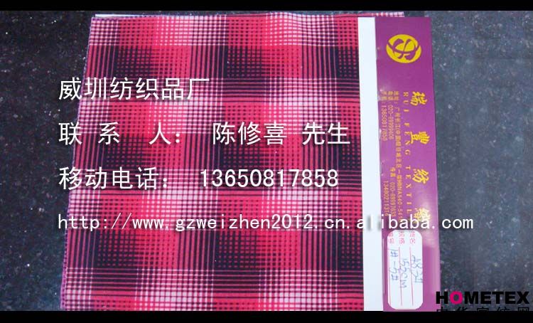 織物組織:平紋 幅寬:155cm 品名:滌單面 密度:240t 染整工藝:印花 貨號:483 克重:140(g/㎡) 具體用途:休閑服、棉服、褲裝、時裝、運動服、戶外服、里布、箱包 別名:483 成分及含量:滌100% 主要用途:服裝用布 紗支:32 ============================================================= 有意請加QQ:1295021910或電話聯系。 公司名稱:威圳紡織品廠 聯系人:陳修喜先生 手機:13650817858 網址:http://www.gzweizhen2010.cn.alibaba.com =============================================================
