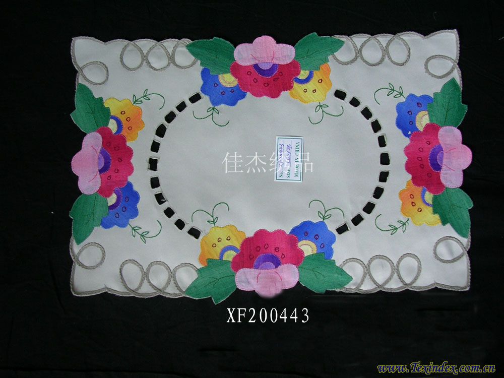 補(bǔ)花盤墊  規(guī)格33*48/30*45/15*30 纖維材料100%滌 品種補(bǔ)花盤墊 織制方法補(bǔ)繡 工藝特點(diǎn)手工 產(chǎn)地山東 淄博