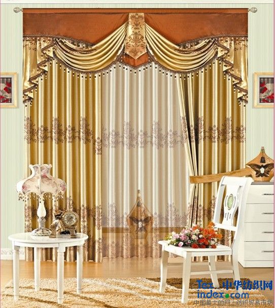 窗簾:環保遮光窗簾布,一般由三層滌綸絲組成,中間是黑色滌綸絲,遮光率達到百分九十以上,有單色、絲光面印花、壓花等款式。用于日照時間長的窗戶及酒店賓館等是最合適不過。