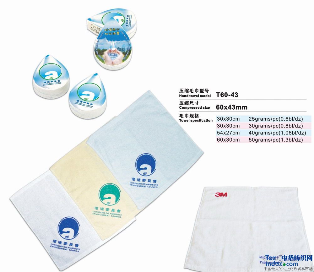 高級環保壓縮毛巾是二十一世紀的高科技成果、采用100%純棉經高溫壓處理而成的新一代產品。放入水中浸片刻即可張開使用。本產品新奇獨特,干凈衛生,產品企業形象宣傳極具效力。廣泛用于廣告宣傳界、酒店、旅游公司等。