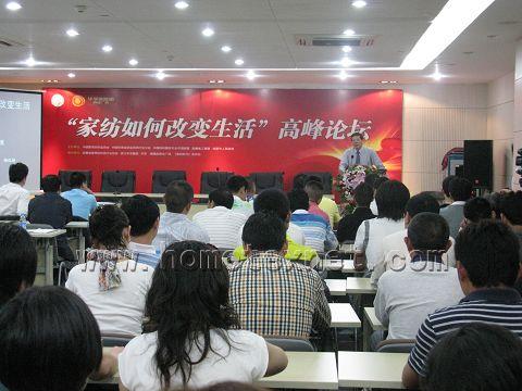 近日,安徽合肥華孚城隍廟商業(yè)廣場(chǎng)5樓的會(huì)議廳內(nèi)人聲鼎沸、氣氛熱烈,作為“第二屆中國(guó)中部(合肥)家用紡織品博覽會(huì)”的重要活動(dòng)之一,名為“家紡如何改變生活”高峰論壇在這里舉行。此次論壇吸引了國(guó)內(nèi)知名家紡企業(yè)的代表以及經(jīng)銷商、代理商共一百多人前來(lái)赴會(huì)。