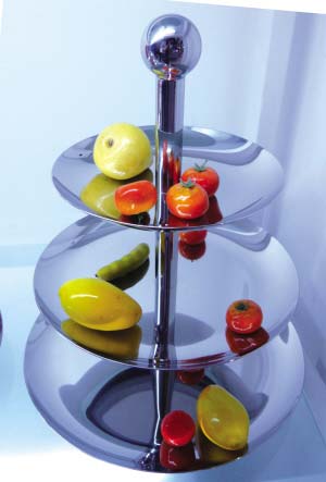 青松般筆直矗立,自下而上漸變的圓盤(pán)堆疊,拓展了立體空間,既美觀又實(shí)用。針對(duì)不同家庭需求,還專(zhuān)門(mén)設(shè)計(jì)生產(chǎn)雙層鋼果盤(pán)。