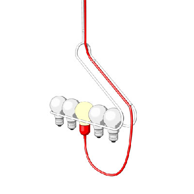 這是一款非常搞怪的吊燈。它雖然也是將燈泡插在燈座里面來接通電源的,但是與傳統產品不同的是,這款吊燈增加了一個燈泡架。可以提前將備用的燈泡一并放在架子上,一旦其中一個燈泡壞了,就可以馬上切換到其他的燈泡,而不必翻箱倒柜的去尋找備用燈泡了。